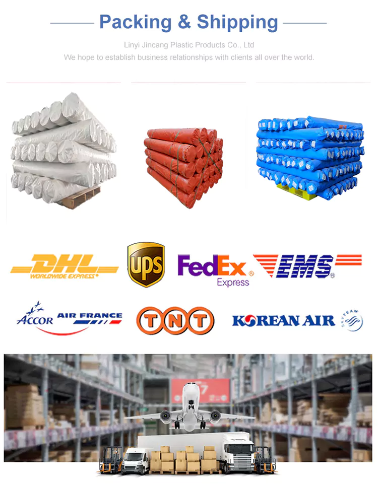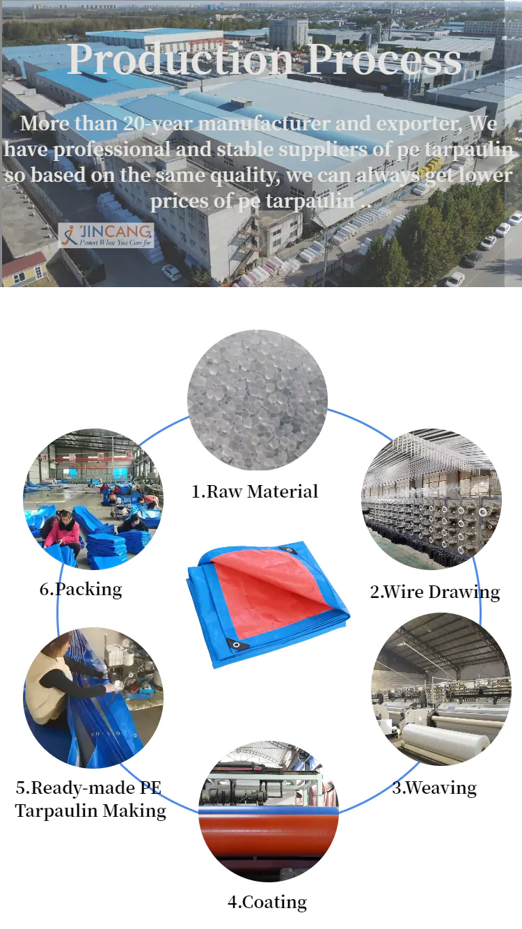 Jincang jest jednym z profesjonalnych producentów rolek plandekowych PE w Chinach. Rolka plandekowa PE o grubości 90 GSM jest pakowana po rolce. Szerokość wynosi zwykle 1,83 m, 2 m, 4 m, 5 m, 6 m. Długość zwykle wynosi 63 m, 91, 100 m, 200 m itd. Możemy również dostosować do Twoich wymagań. Jest szeroko stosowany do ochrony zewnętrznej, przykrycia towarów, placów budowy, celów rolniczych i tymczasowych schronień.