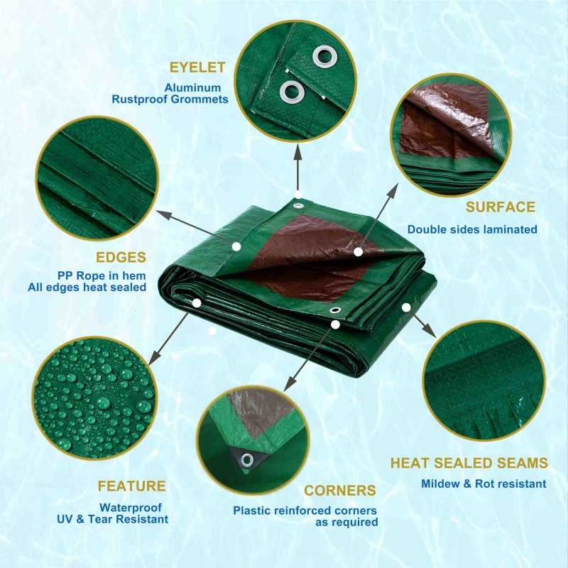 1. PE plandeka jest w 100%wodoodporny, dobrze nadaje się do użytku na zewnątrz w deszczu lub mokre warunki.